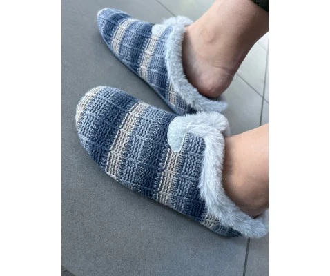 Zapatilla para el hogar Vega, modelo de la marca Garzon, combinado con tonalidades azules, super calentitas para esta temporada, suela de goma antideslizante.