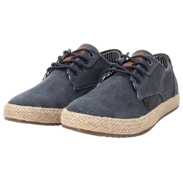 Descubre un calzado masculino que mezcla estilo relajado y sofisticación discreta, perfecto para los días cálidos. Este modelo, en un tono navy profundo con detalles tipo esparto, está diseñado para el hombre que busca versatilidad sin renunciar a comodidad ni diseño.