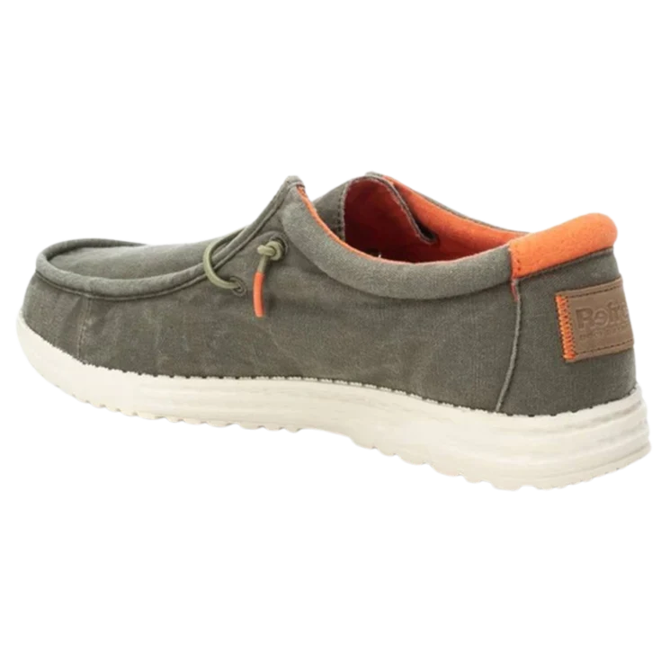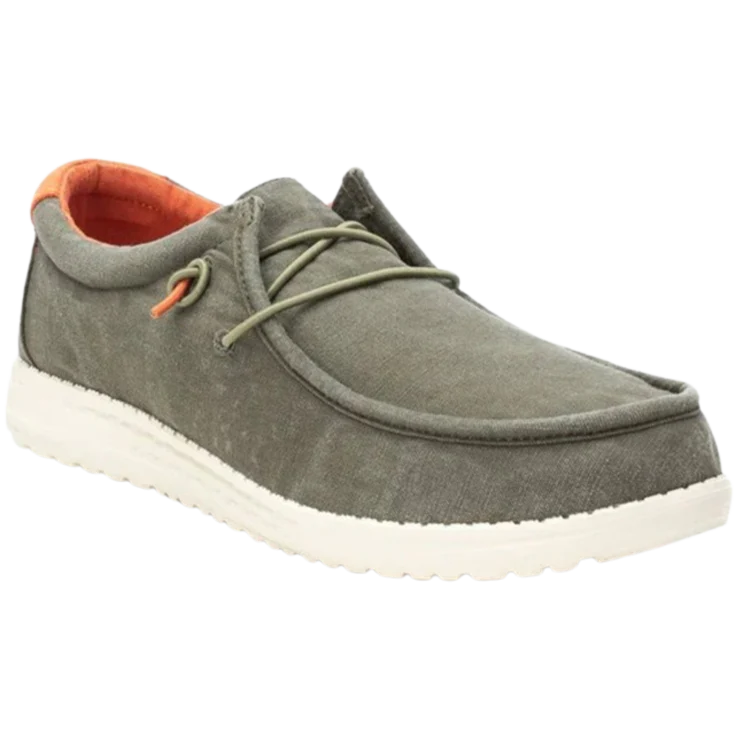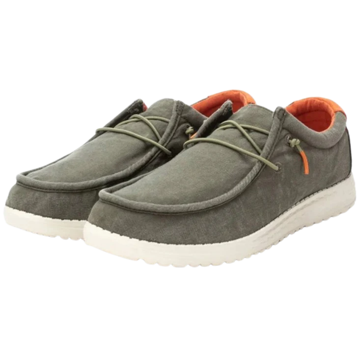 Al calzarlo, notarás la textura ligera y casi aireada de la lona sobre tu pie, mientras el tono kaki transmite una presencia sobria y relajada. La suela responde con firmeza sin rigidez, y el interior acolchado envuelve el pie en una sensación de comodidad envolvente desde el primer paso.