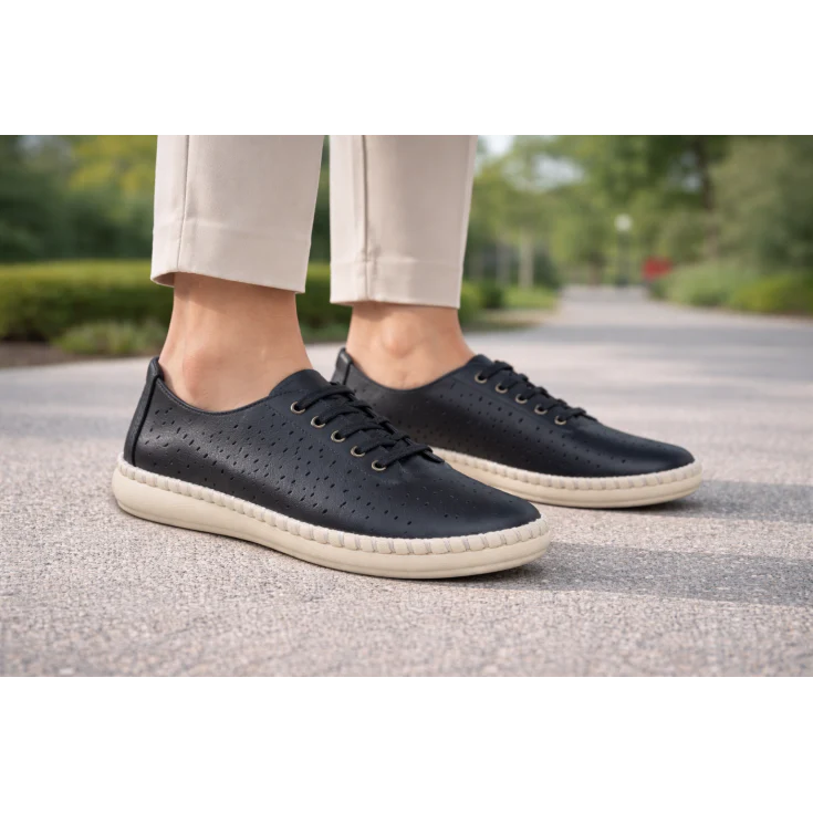 El Zapato Cómodo Alivia Negro está diseñado para acompañarte en tu día a día con ligereza, frescura y estilo minimalista. Su diseño perforado y su estructura flexible lo convierten en el aliado perfecto para mujeres que buscan un zapato cómodo para caminar, trabajar o viajar sin renunciar a una estética limpia y versátil.
