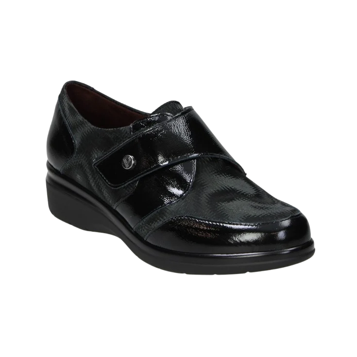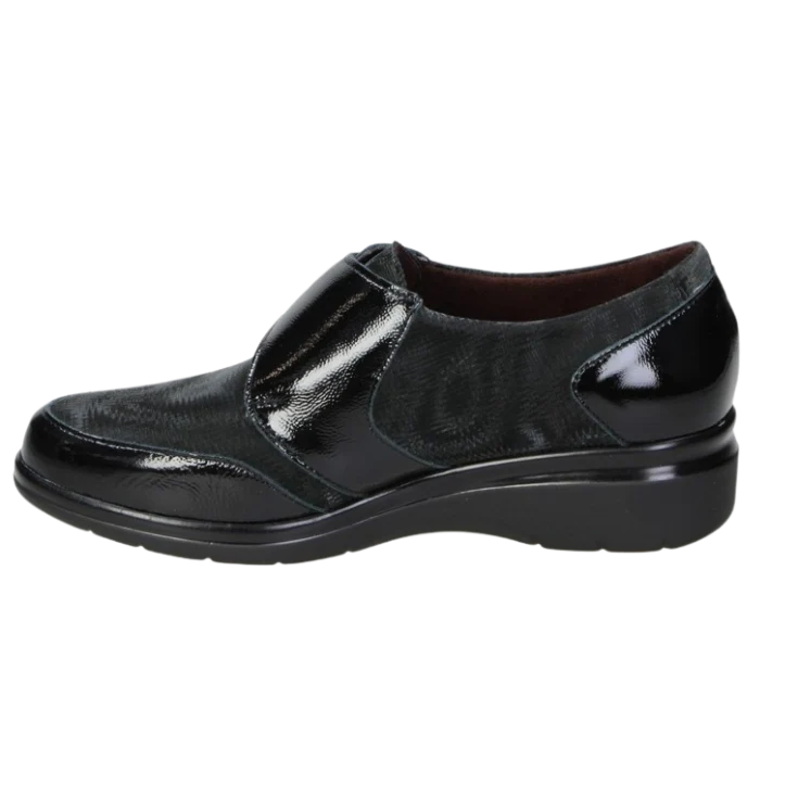 Siente cómo el material elástico se adapta con delicadeza, proporcionando libertad de movimiento y ligereza en cada paso. La piel brillante aporta un toque sofisticado, haciendo de este modelo una opción elegante y cómoda a la vez.