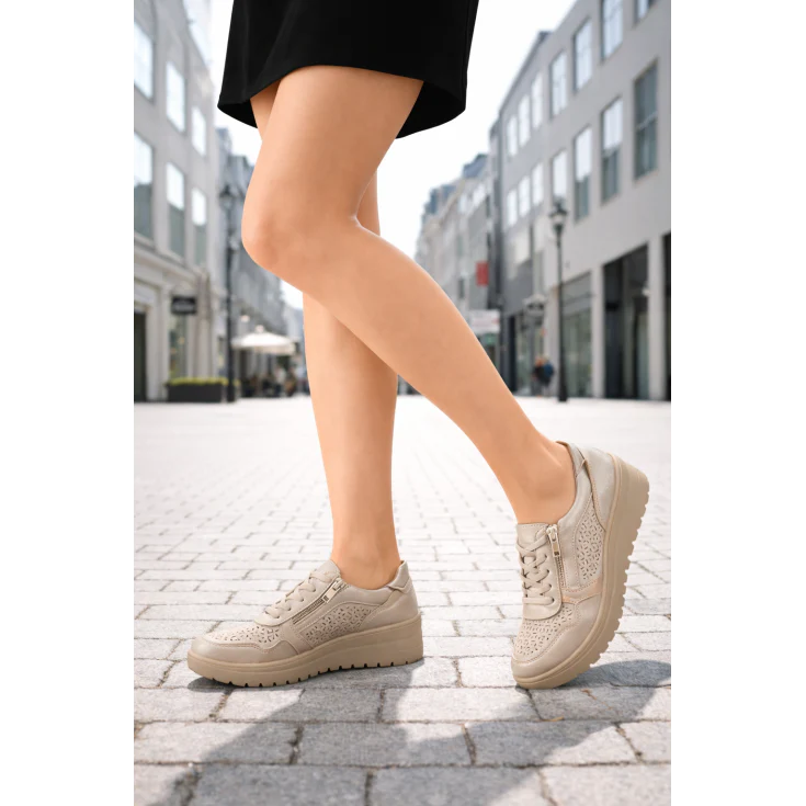 El Zapato Cómodo Lunara Beige combina estilo deportivo y elegancia neutra en un diseño versátil pensado para el día a día. Su tono beige aporta luminosidad y fácil combinación, mientras su estructura ligera con suela gruesa garantiza estabilidad y confort en cada paso.