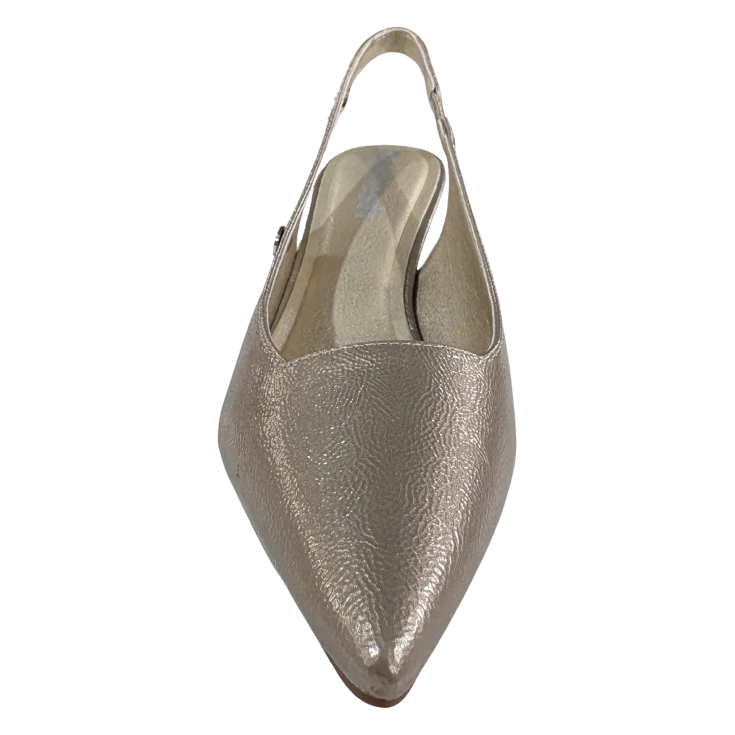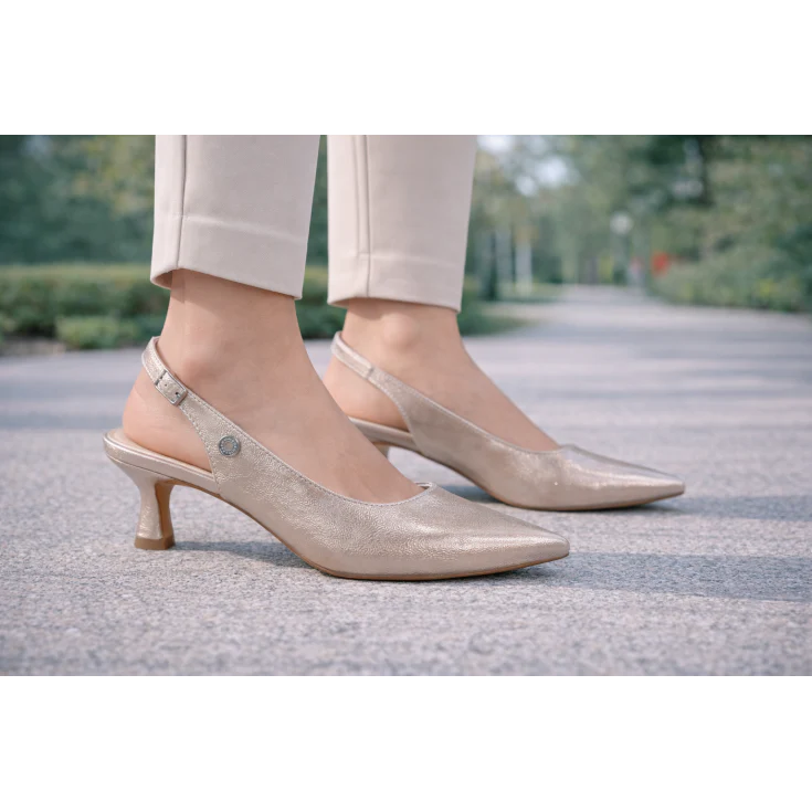 El Zapato de Salón Charol Oro es pura elegancia luminosa con un toque sofisticado y actual. Su acabado en charol dorado refleja la luz con sutileza, convirtiéndolo en el aliado perfecto para invitadas, celebraciones y eventos donde cada detalle cuenta. Un zapato de salón slingback que estiliza y aporta distinción sin renunciar a la comodidad.