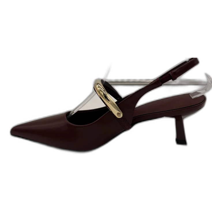 El Elaine Vino es una pieza sofisticada que transforma cualquier look con su tonalidad intensa y elegante. Su diseño estilizado, combinado con el detalle metálico dorado, crea un contraste perfecto que atrae todas las miradas sin perder sutileza.