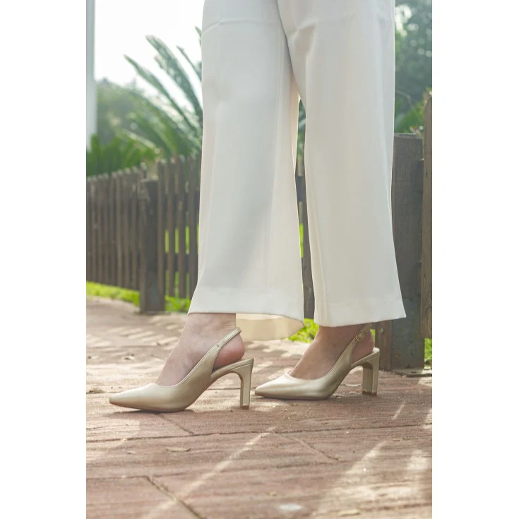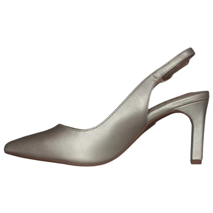 El zapato de salón Esencia Oro es la combinación perfecta de elegancia y sofisticación. Su diseño en acabado metalizado aporta un toque de distinción, ideal para eventos especiales o para elevar cualquier look con un aire refinado.
