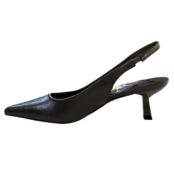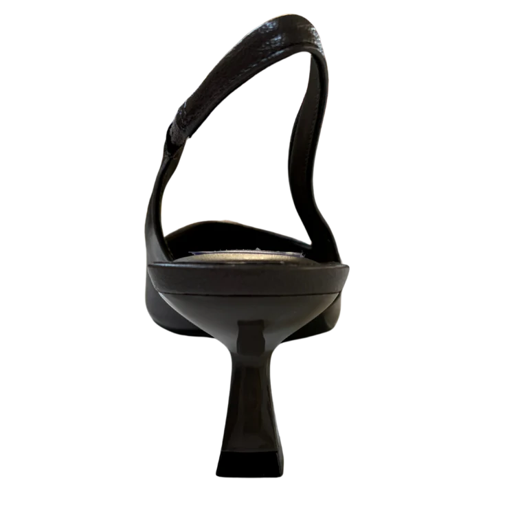 Este modelo tipo slingback destaca por su silueta fina y femenina, con puntera cerrada y talón abierto con tira ajustable. El tacón medio estiliza sin resultar excesivo, ofreciendo un equilibrio ideal entre altura, estabilidad y confort durante todo el día.