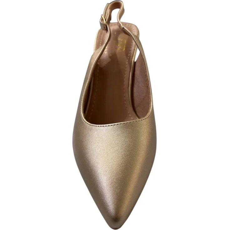 El Zapato de Salón Soletta Oro es la pieza perfecta para iluminar cualquier look. Su acabado metalizado en tono dorado aporta sofisticación instantánea, mientras su diseño destalonado con pulsera combina elegancia y sujeción para eventos especiales y celebraciones.
