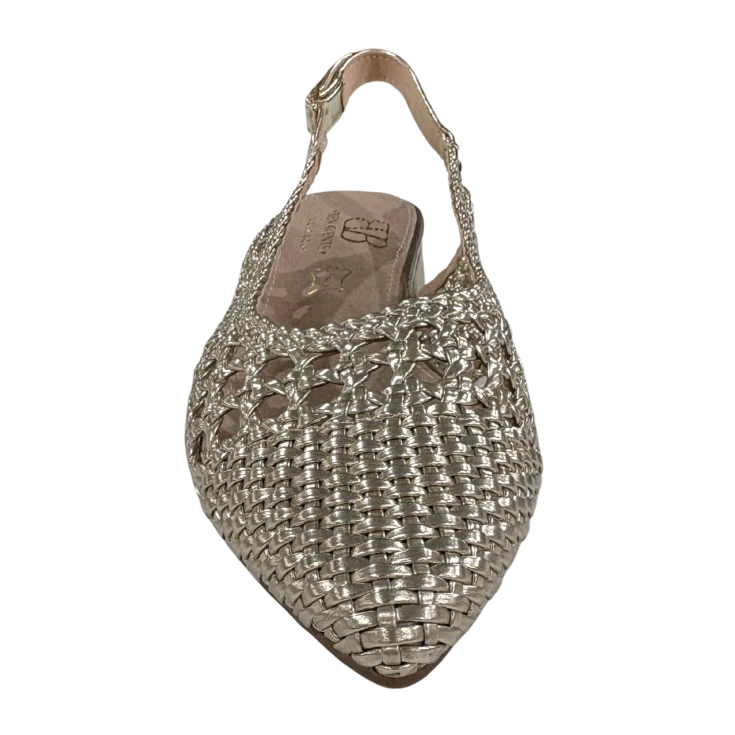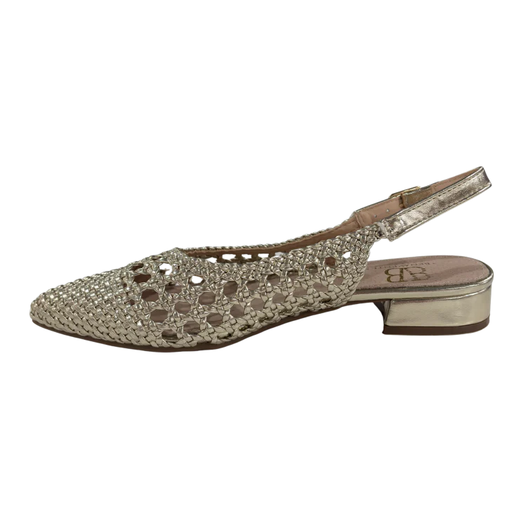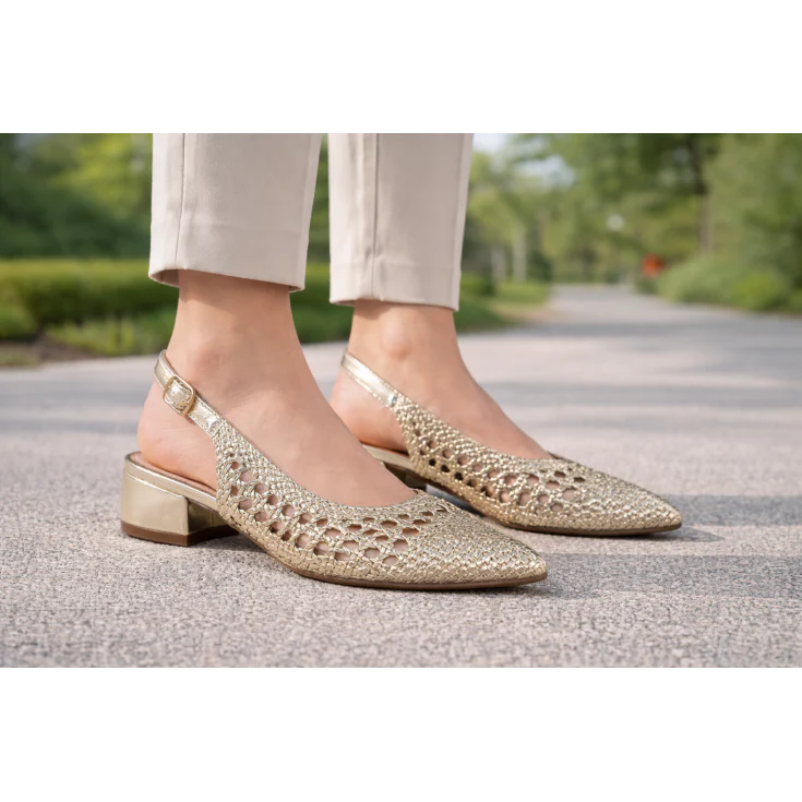 El Zapato de Salón Valdara Oro es pura sofisticación luminosa. Su diseño destalonado con tejido trenzado metalizado en tono oro convierte cualquier look en una propuesta elegante y actual. Un zapato de salón elegante pensado para invitadas, eventos especiales o para elevar un conjunto sencillo con un toque dorado lleno de personalidad.