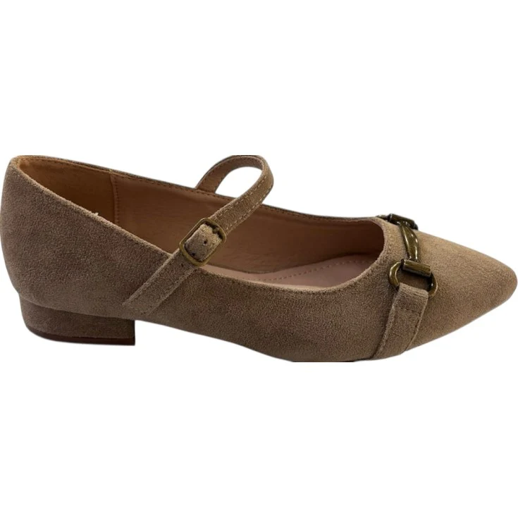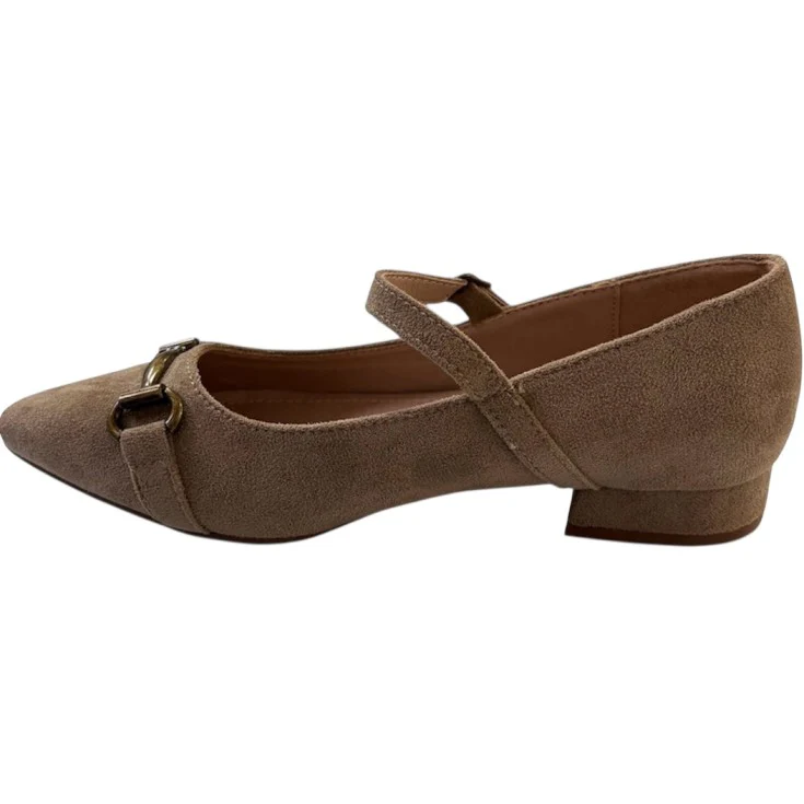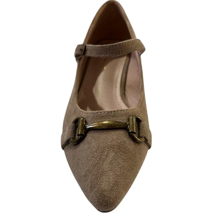El Zapato de Salón Valentina Beige combina delicadeza y sofisticación en un diseño femenino con pulsera ajustable. Su acabado efecto ante y su detalle metálico frontal aportan un aire elegante y atemporal, ideal para looks de oficina, eventos o estilismos de invitada con un toque refinado.