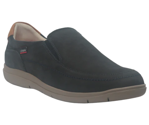 Al calzarlo sentirás la suavidad y calidez de la piel abrazando el pie, mientras el tono marino transmite elegancia sobria y los detalles en cuero añaden sofisticación. La cuña y su suela de goma amortiguan cada paso, generando una sensación de ligereza y soporte que invita a caminar con confianza.