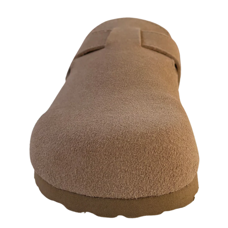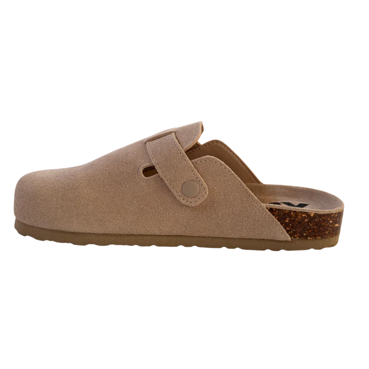 El serraje presenta una textura aterciopelada y cálida que envuelve el pie con suavidad. El tono beige transmite naturalidad y calma, evocando confort desde el primer paso y una sensación acogedora durante todo el día.