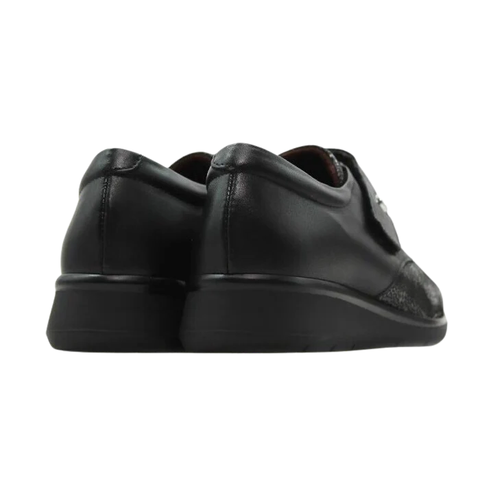 Comodidad, elegancia y diseño inteligente en un solo modelo. Los Zapatos Cómodos Pitillos Blucher con correa y lycra en color negro son la elección perfecta para quienes buscan un calzado versátil, ligero y adaptable al movimiento natural del pie. Su diseño con cierre de velcro facilita el ajuste, mientras que el tejido elástico se adapta con suavidad, brindando confort en cada paso.