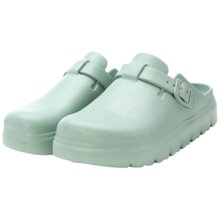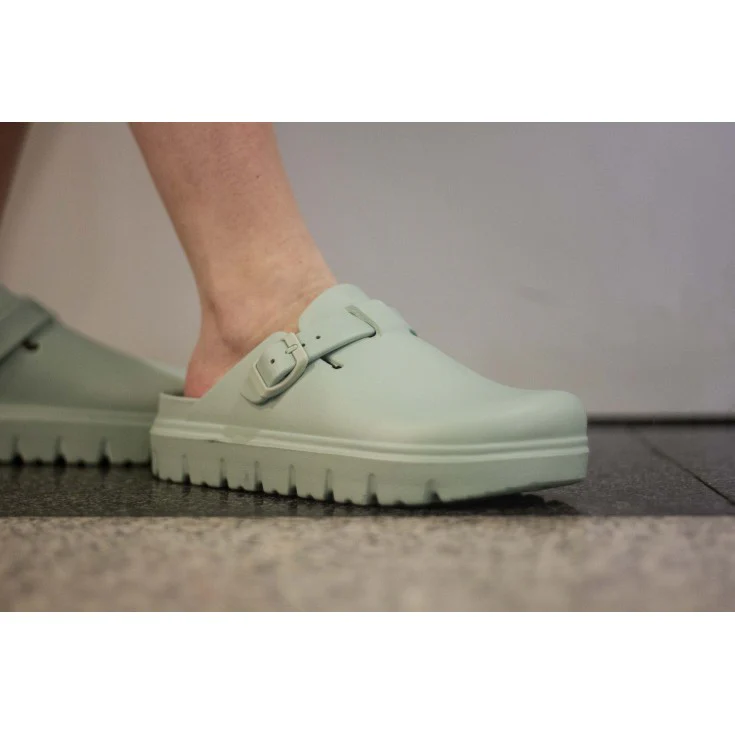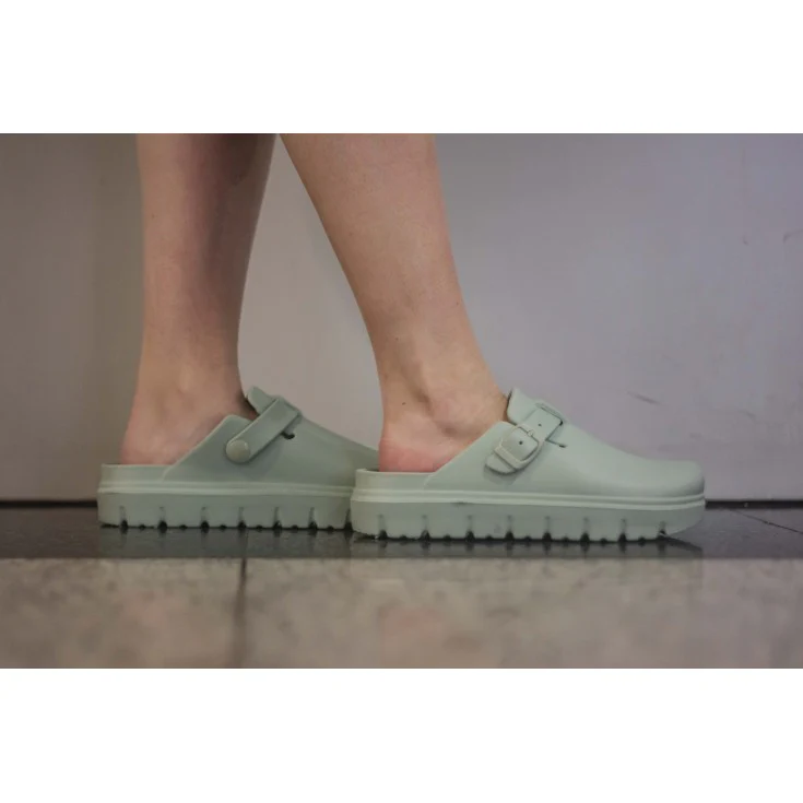 Un zueco donde la funcionalidad y el diseño se encuentran, con toques frescos y detalles ergonómicos hechos para caminar.