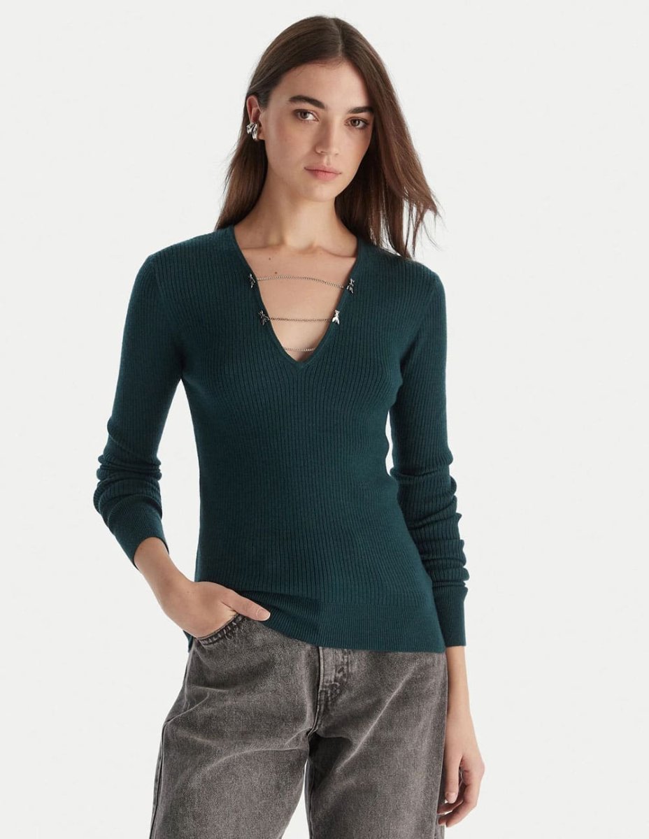 Jersey Patrizia Pepe con Cadenas Verde Mujer