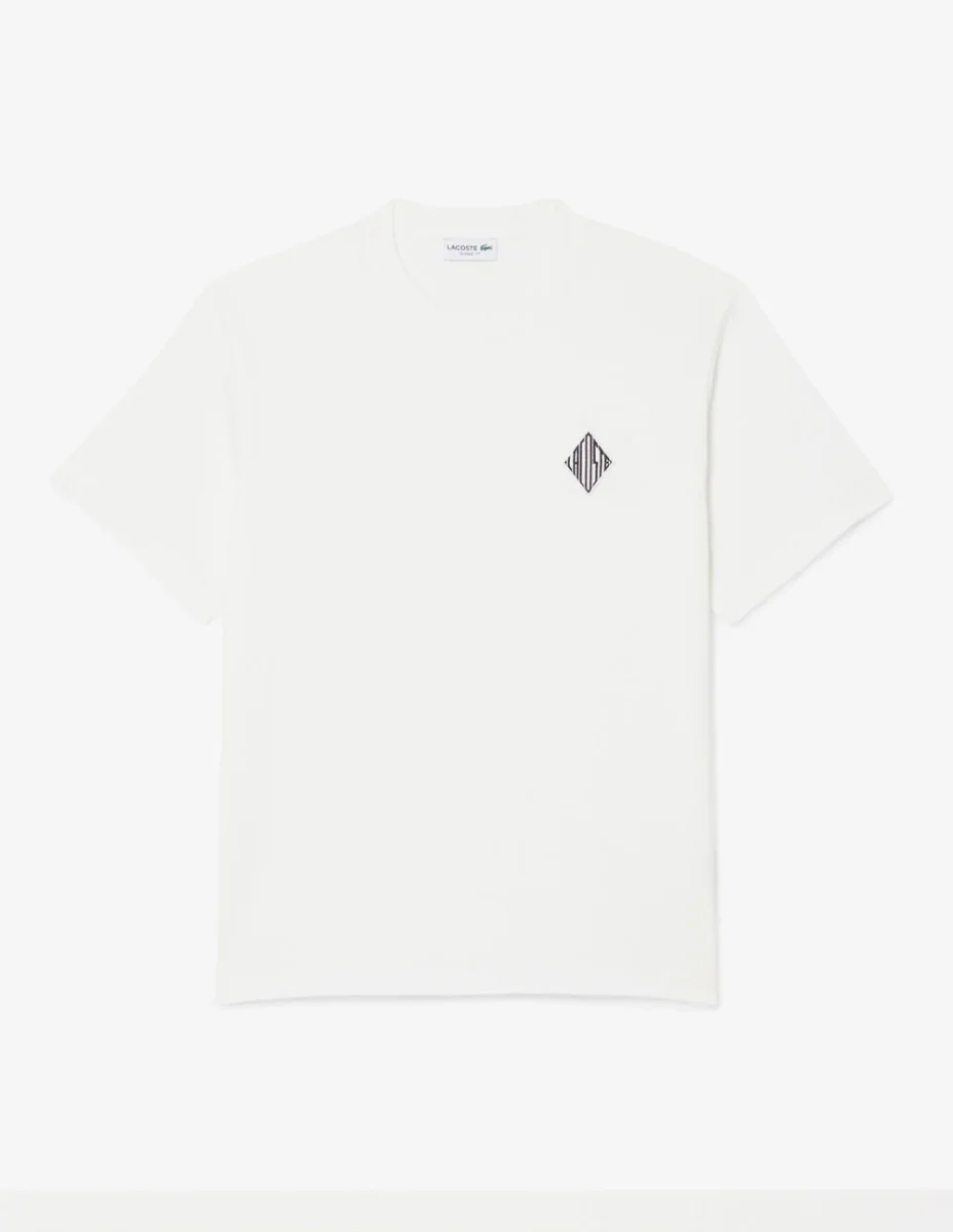 Camiseta Lacoste de Piqué de Lino y Algodón Blanca Hombre
