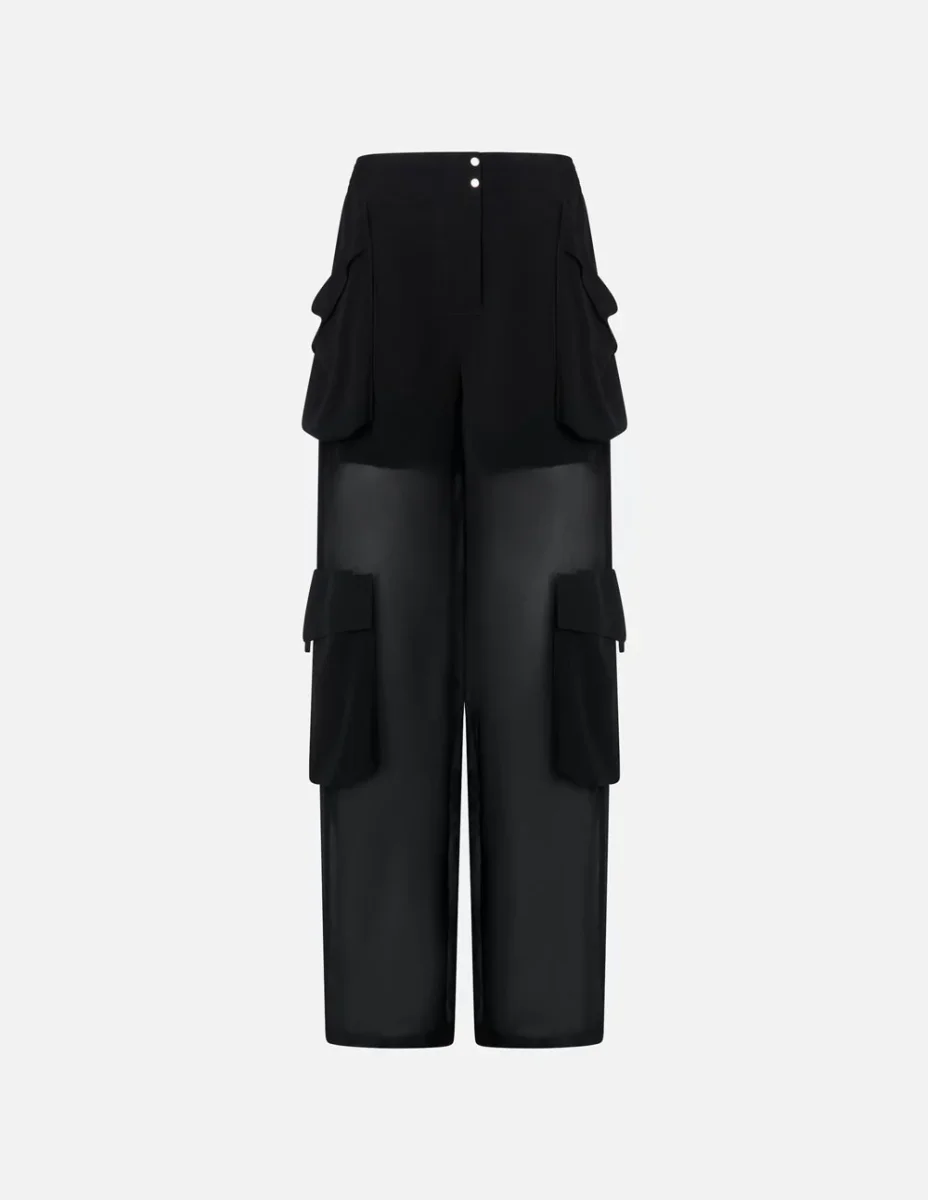 Pantalón Cargo Pinko de Georgette Transparente Negro Mujer