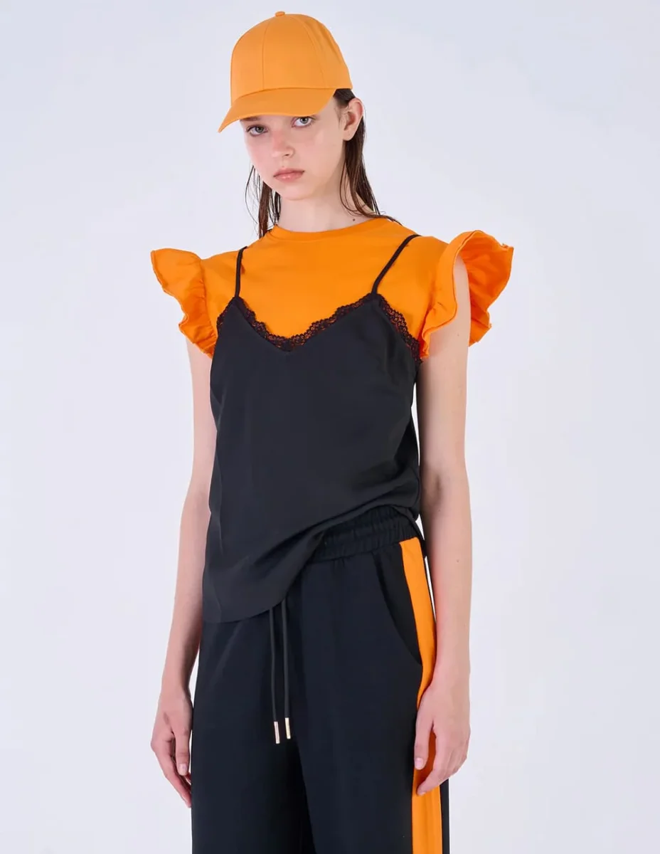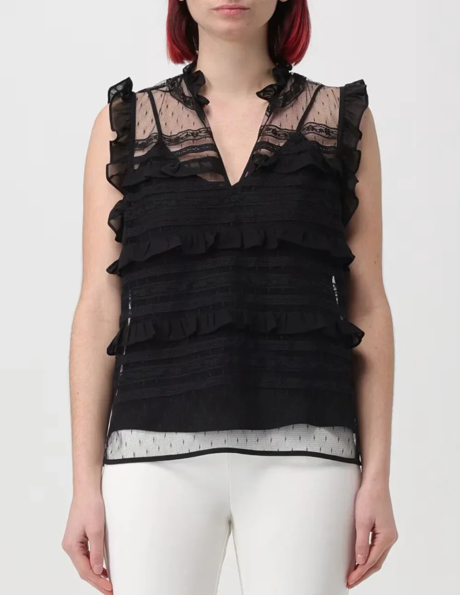 Top TWINSET de Tul Plumetis y Encaje Negro Mujer