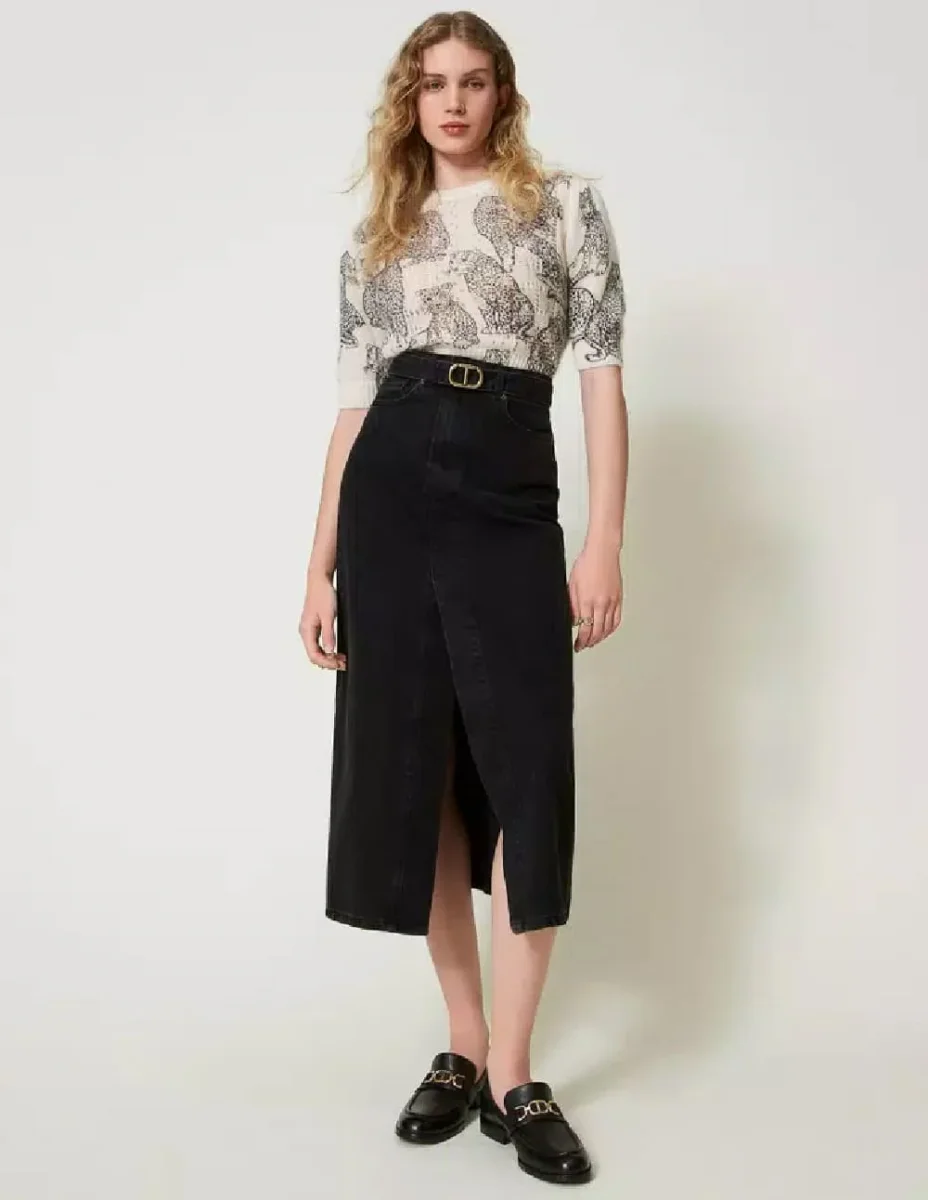 Falda Vaquera TWINSET con Cinturón Negra Mujer