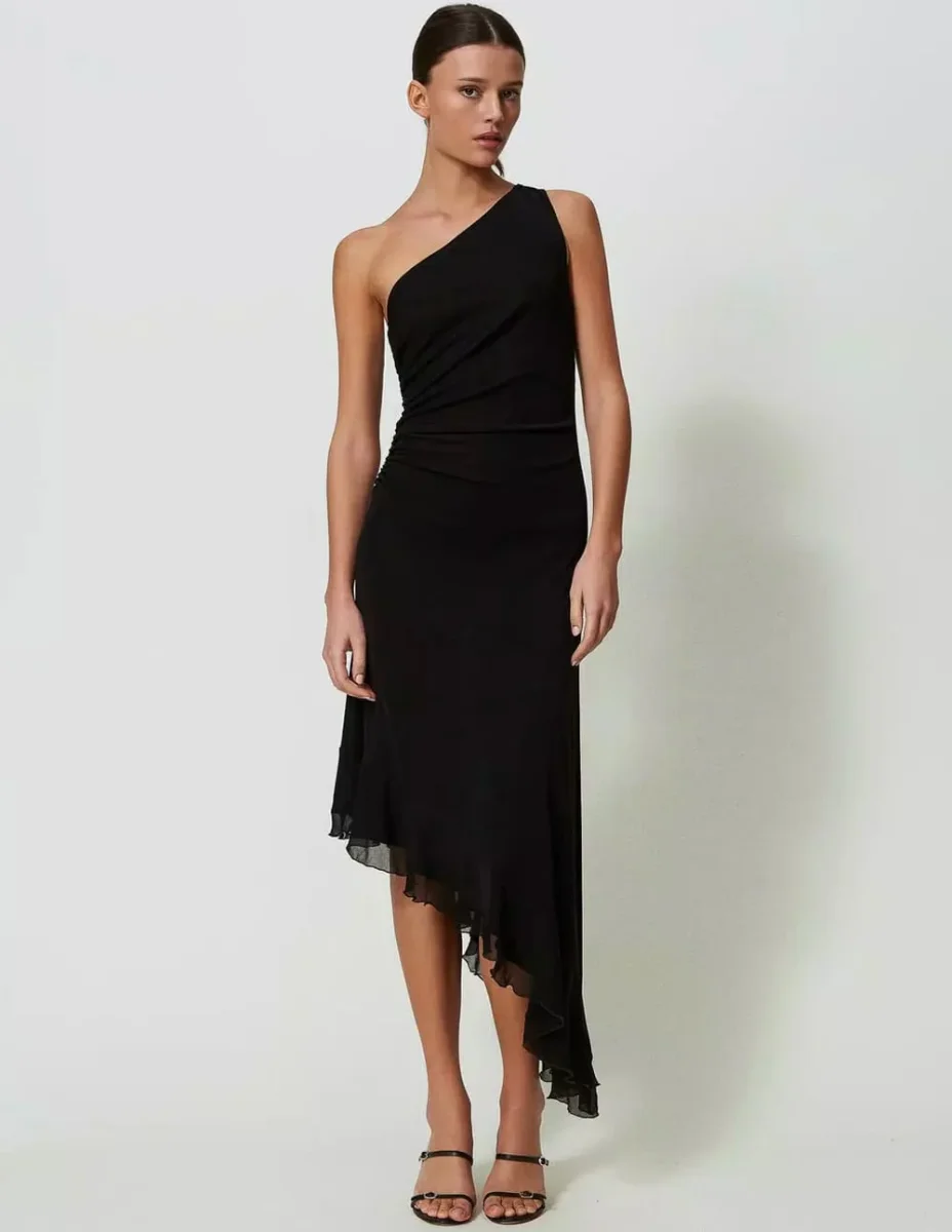 Vestido TWINSET con Drapeado Negro Mujer