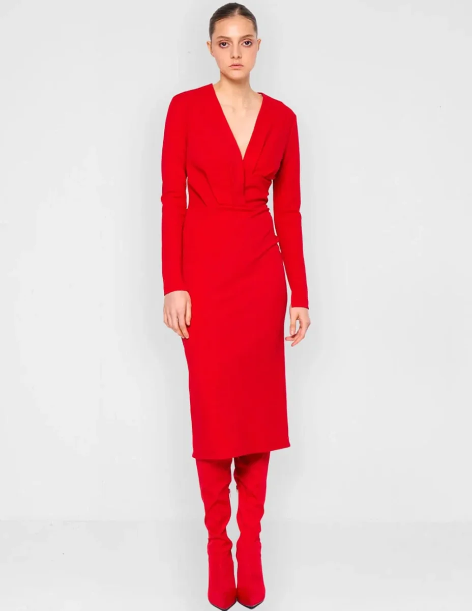 Vestido Silvian Heach Escote Pico Rojo Mujer
