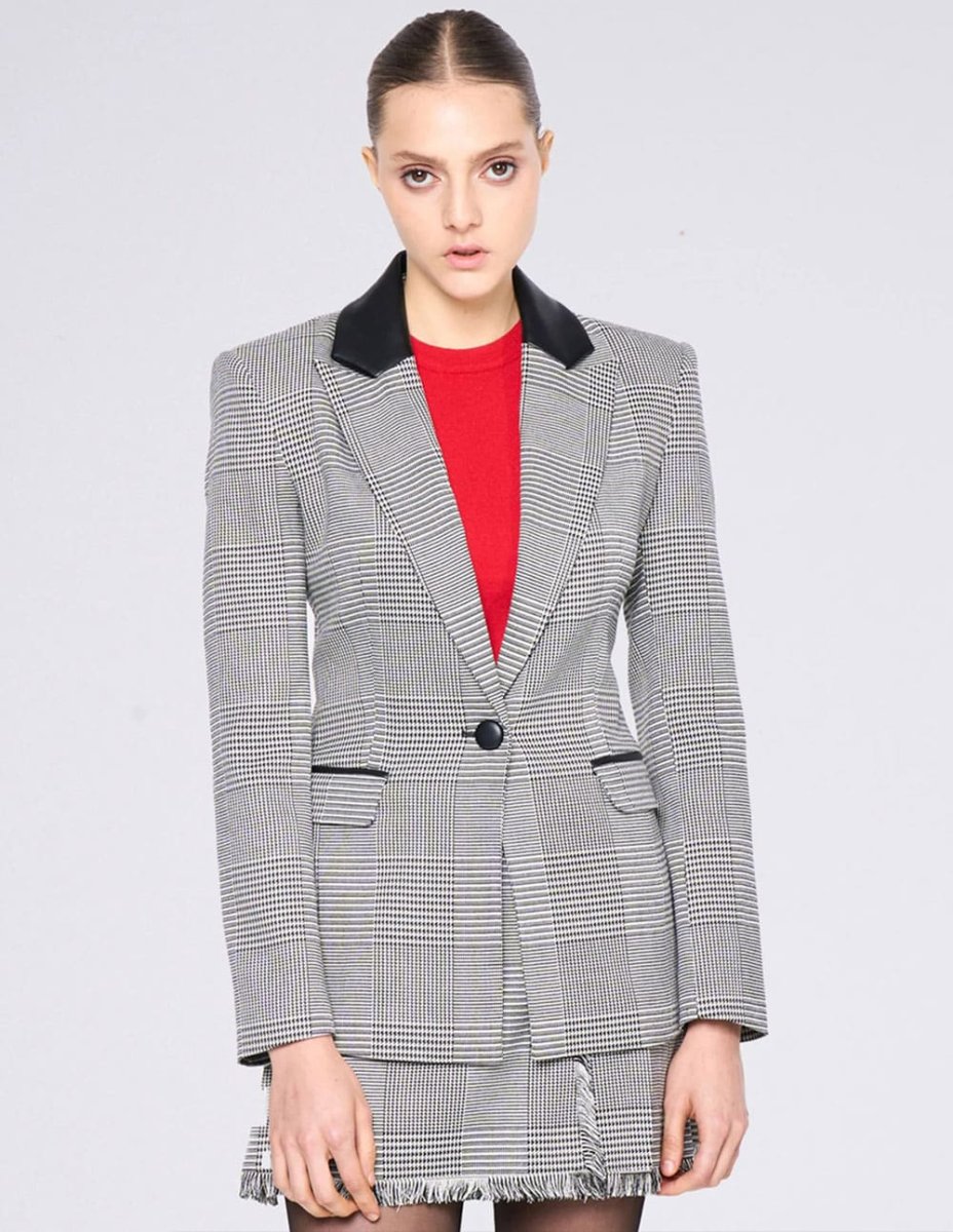 Blazer Silvian Heach de Cuadros Negra y Blanca Mujer