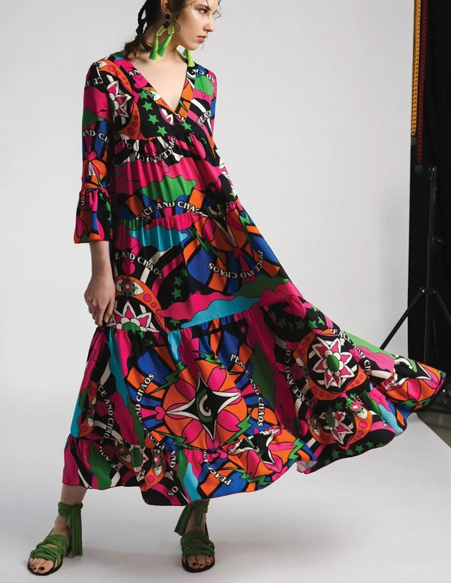 Vestido Largo Peace and Chaos Majestic con Volantes Multicolor Mujer