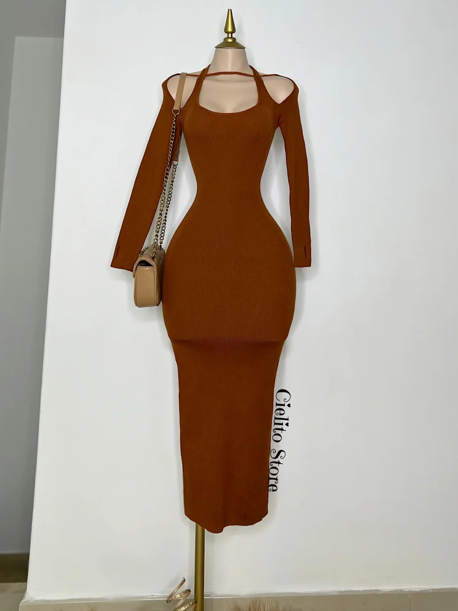 VESTIDO MARRÓN CON PEDRERÍA