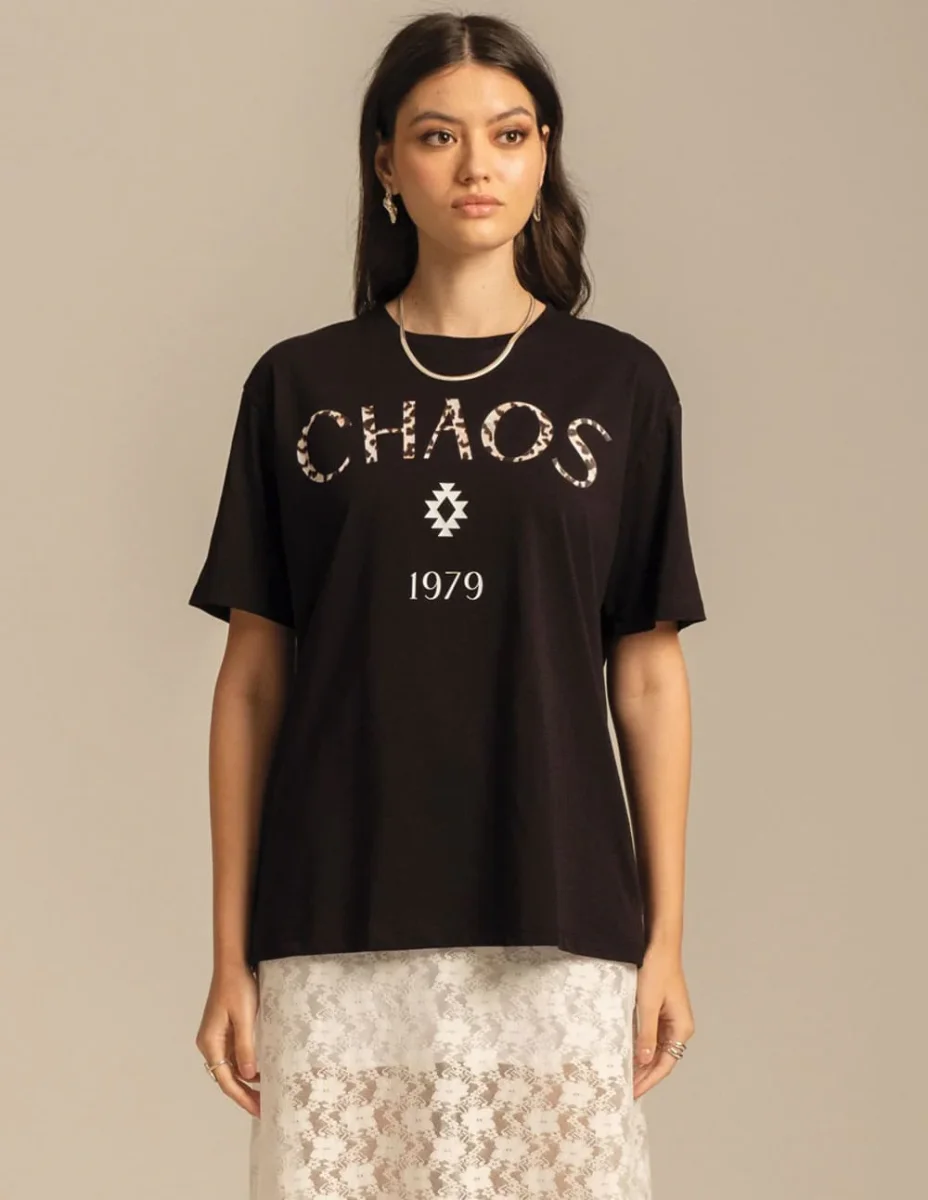 Camiseta Peace and Chaos Menagerie Negra Mujer