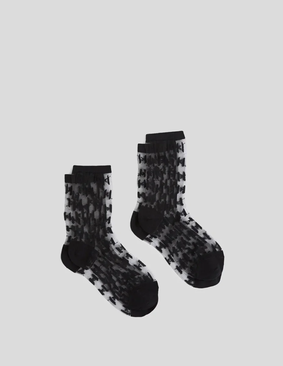Calcetines Karl Lagerfeld de Malla Monogram 2 Pack Negros Mujer