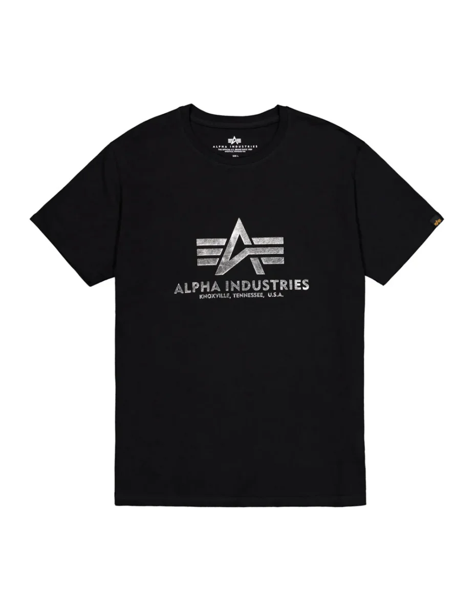 Camiseta Alpha Industries Basic Big Logo Foil Print Negra y Plateada Hombre
